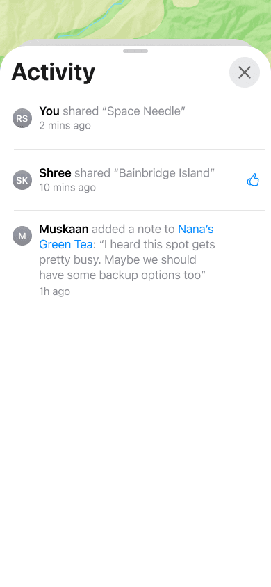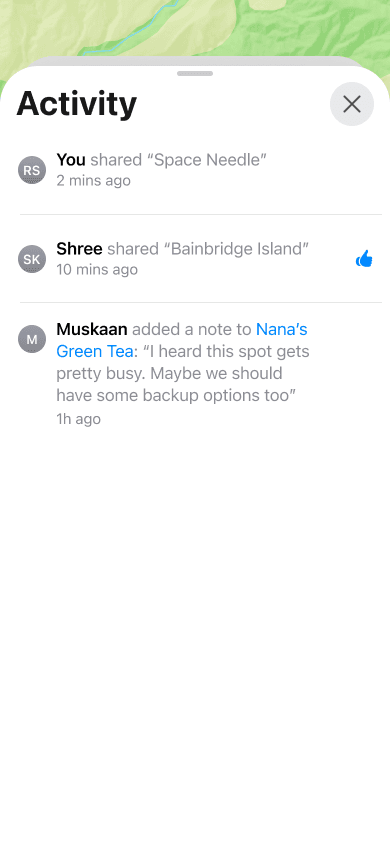 I looked closely at the Photos app for Shared Albums/Activity patterns that I could apply to Apple Maps. I also looked at Google Maps to test the extent of the Lists functionality since it's the closest equivalent.