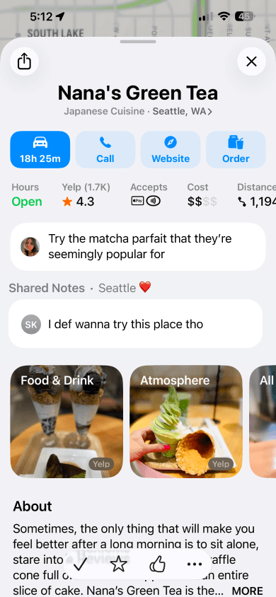 I felt like there was an opportunity to incorporate the same concept in Apple Maps based on my own experiences of planning trips, keeping note of locations I wanted to visit with others, and gaps that existed in some of that communication.