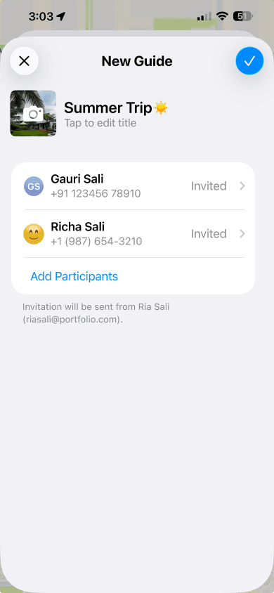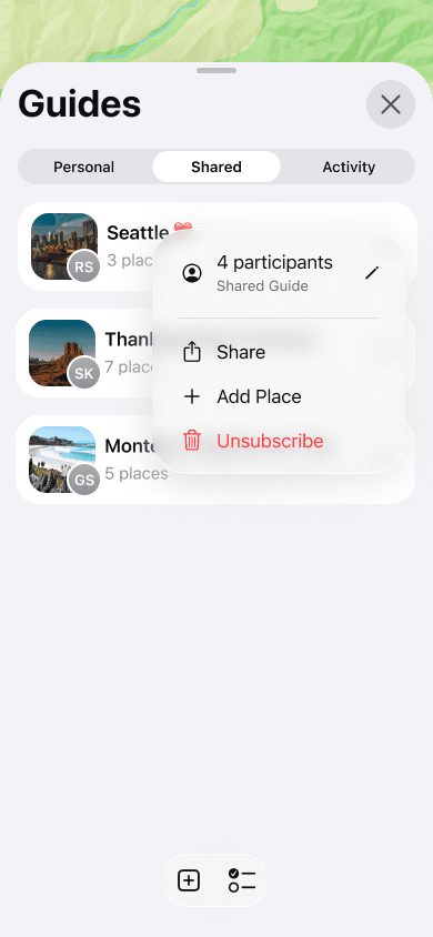 A design and prototype exploration to support collaboration within shared guides in Apple Maps.