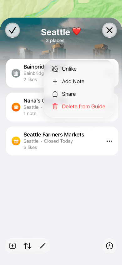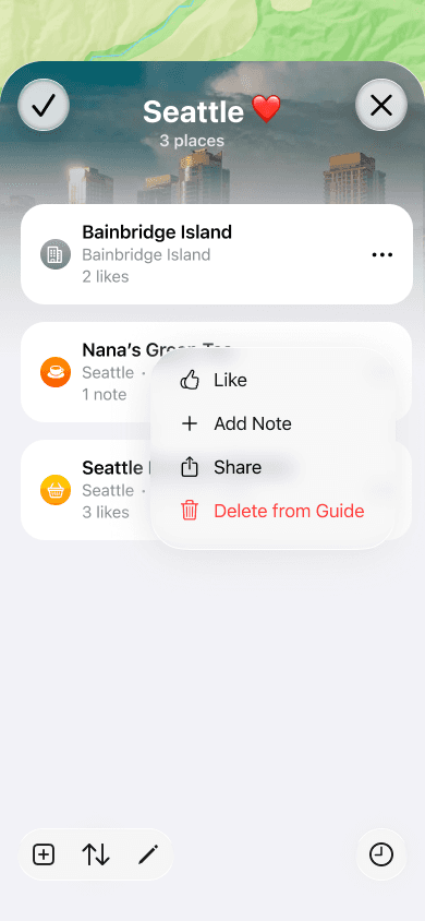 This short exercise is a personal exploration into what collaborative guides in Apple Maps could look like. An aim for the project was to outline a simple flow for a user to create and share a guide with others to contribute to, and use the design as a basis to delve into learning how to leverage AI-powered coding tools to build a functional SwiftUI iOS prototype.