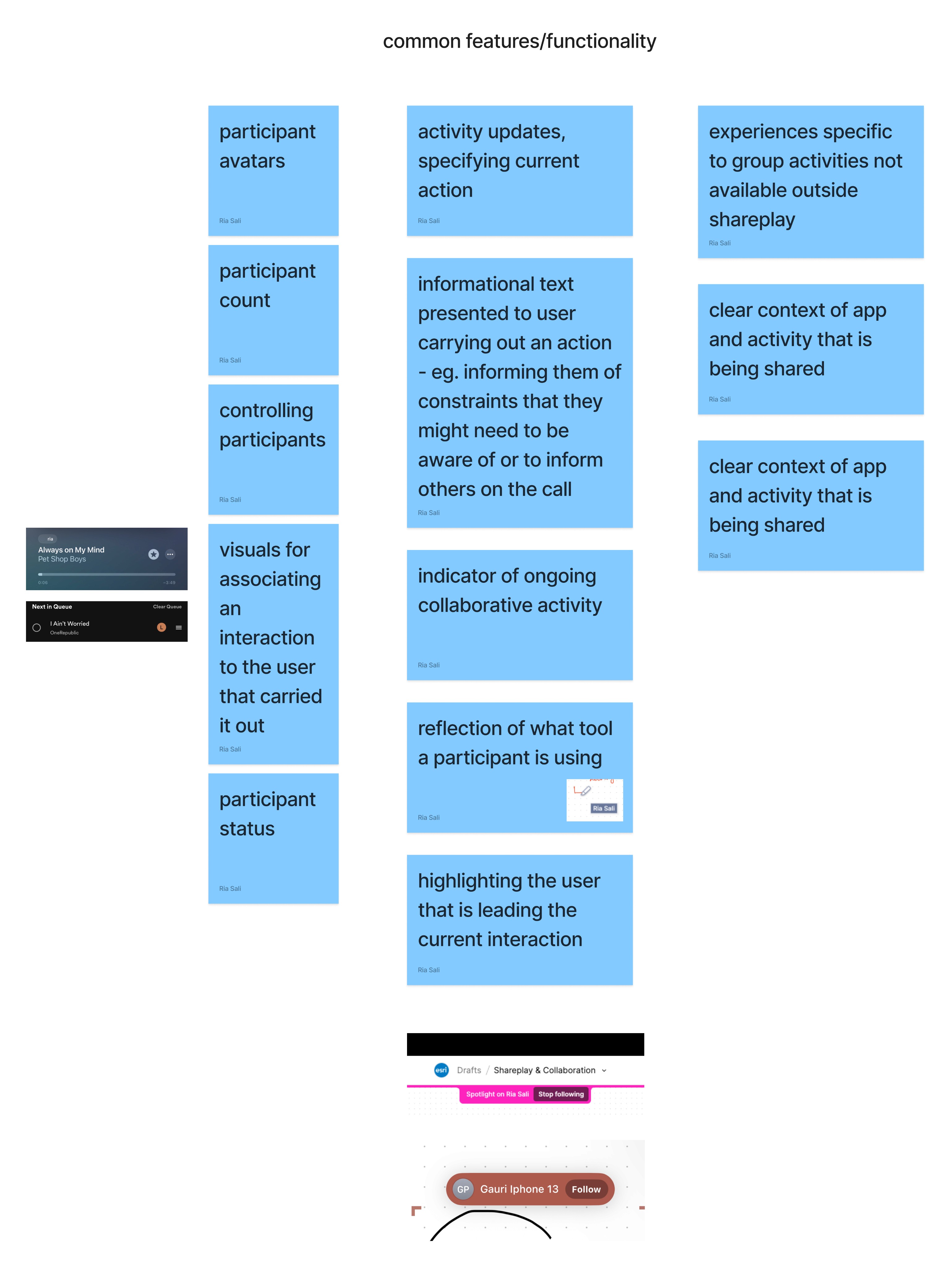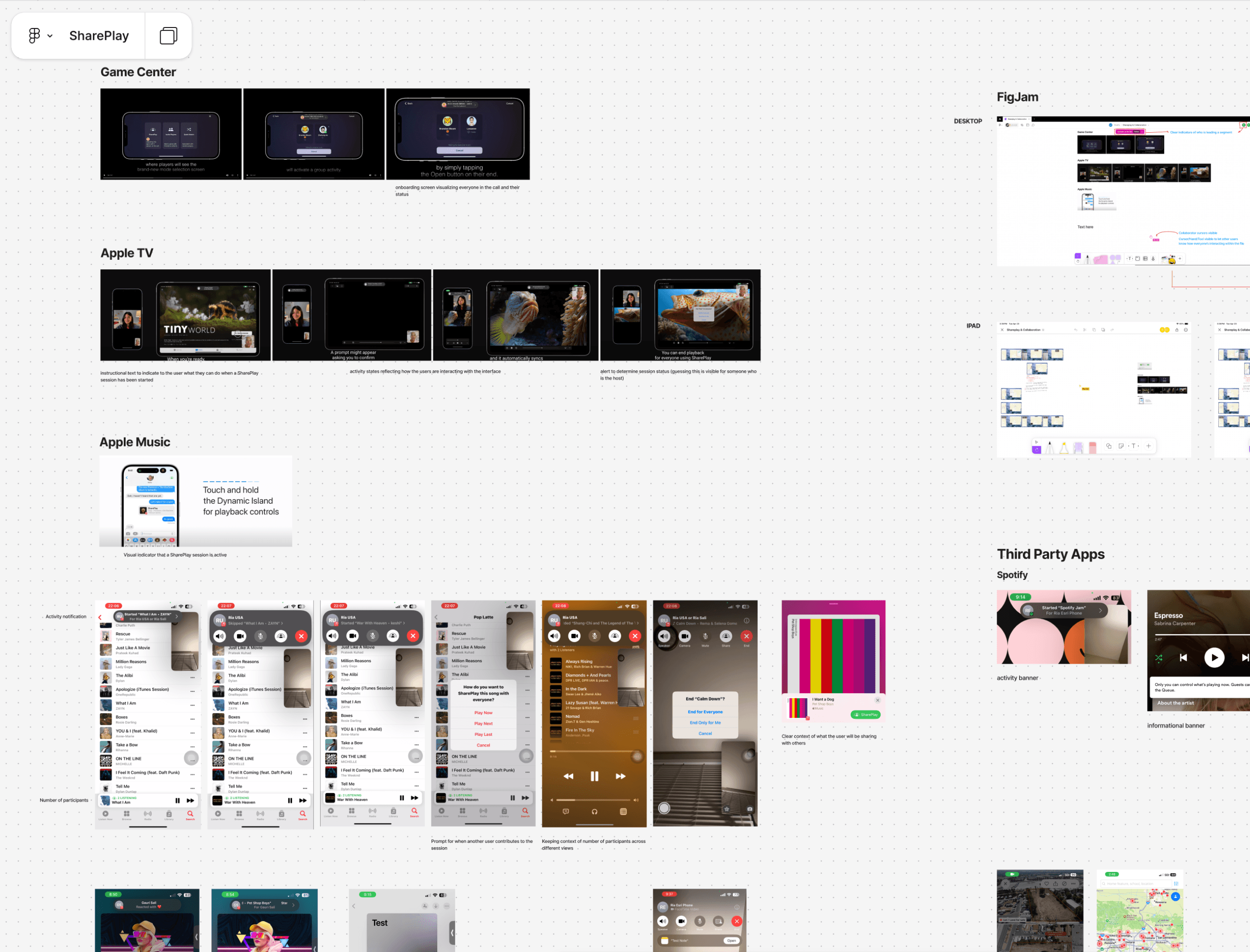 Whiteboarding. I looked at iOS, iPad OS and web apps that facilitate real-time collaboration. This was a mix of first, third party apps and Apple’s WWDC videos. The goal was to identify: